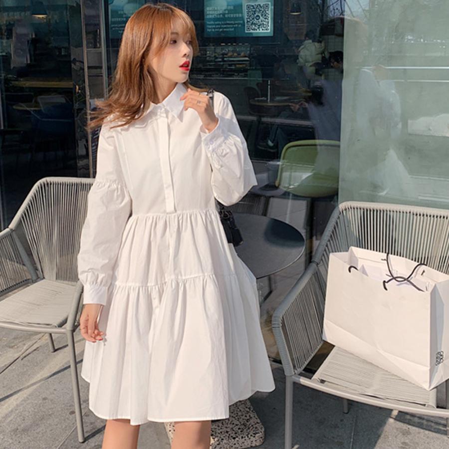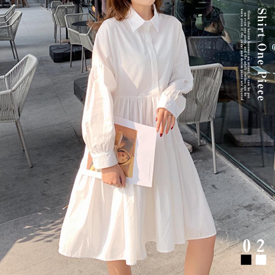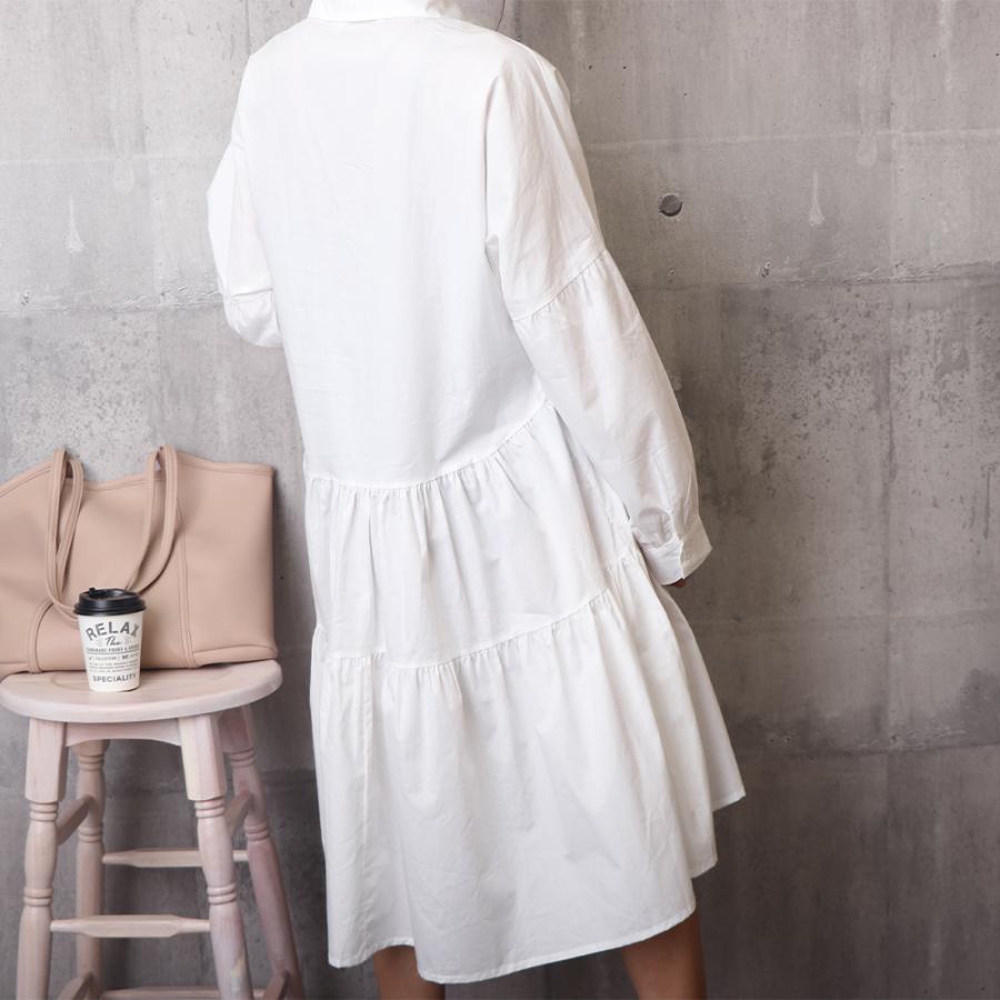 ロング丈シャツ ティアード シャツワンピ長袖 フレアワンピース カジュアル 韓国風