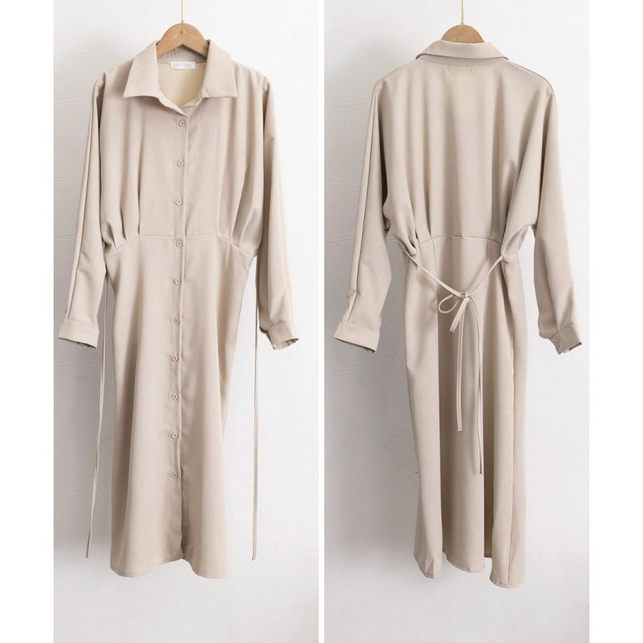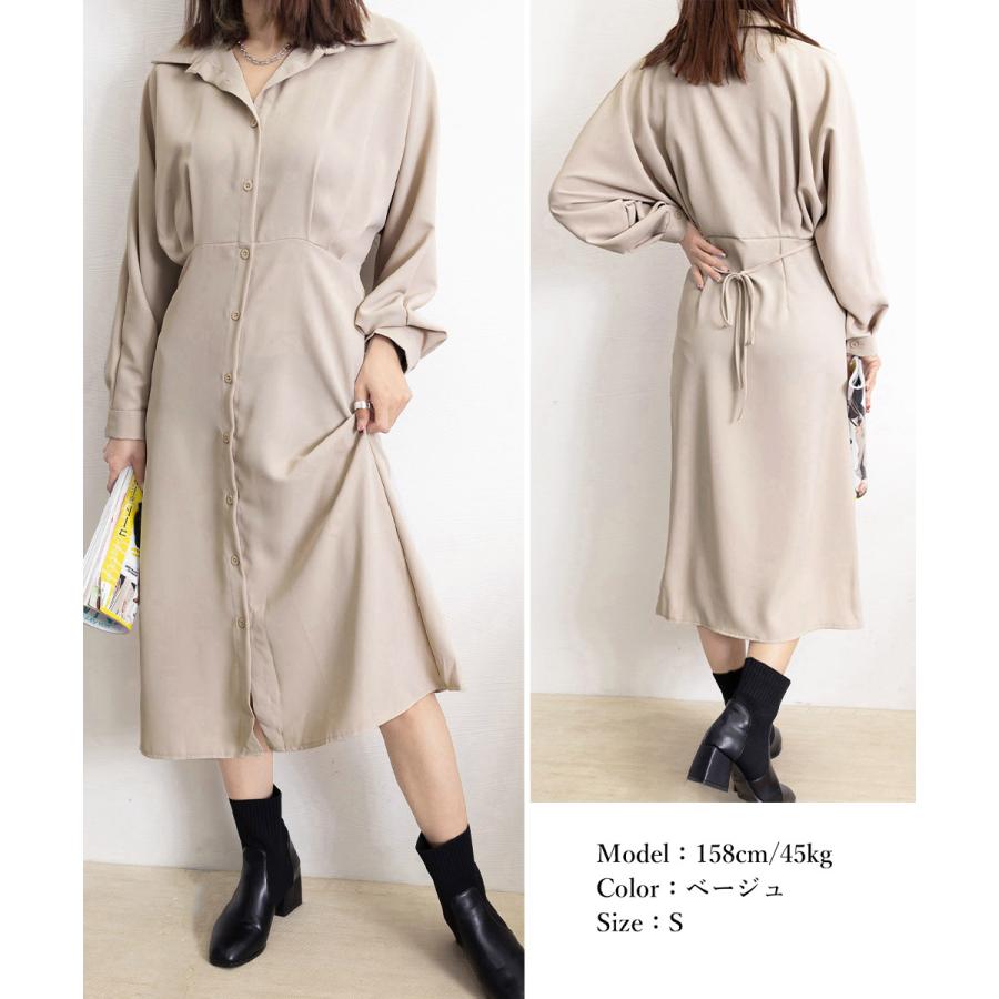 韓国風 ミモレワンピース長袖 レディース 着やせ ロングワンピース上品 大人可愛いワンピ エレガント シャツカーディガン