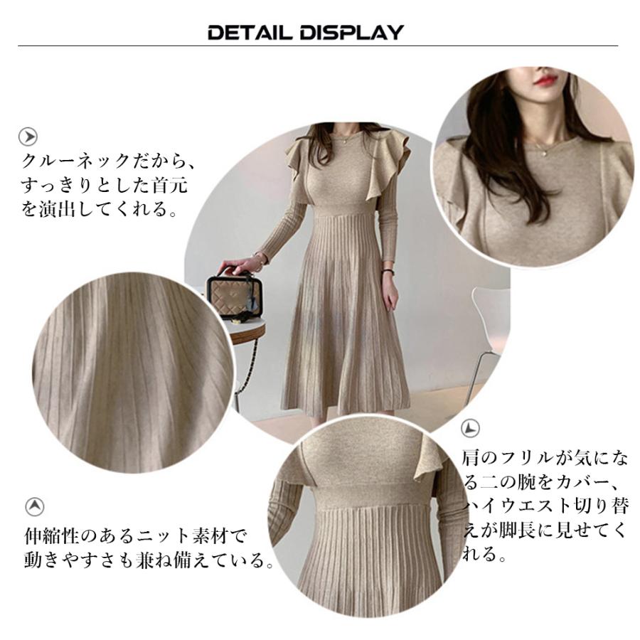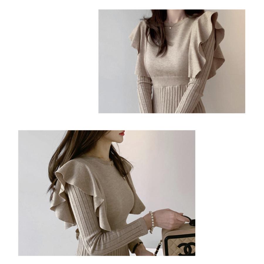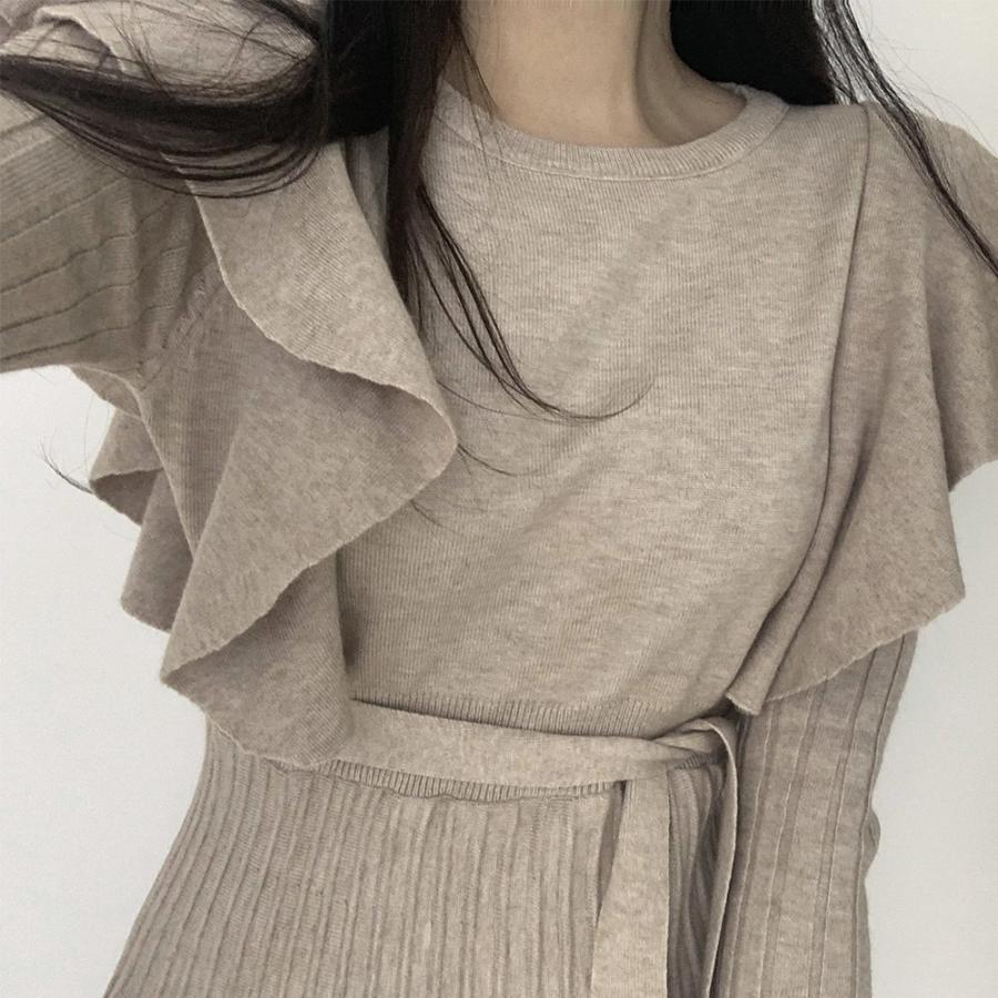 今年らしいフェミニン感を演出してくれるショルダーフリルニットワンピース。