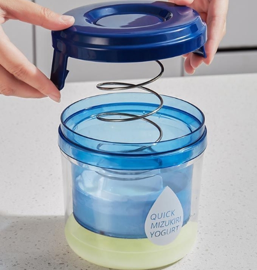 サイズについての説明:サイズ:15*15*14cm 使用方法:ヨーグルトを容器に入れ、白い蓋をヨーグルトの上にかぶせ、その上にスプリングを置きます。最後に青い蓋をかぶせて密封するだけです。