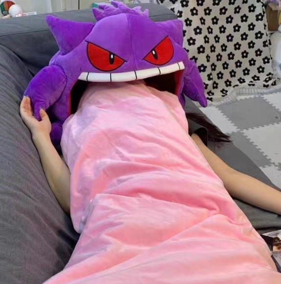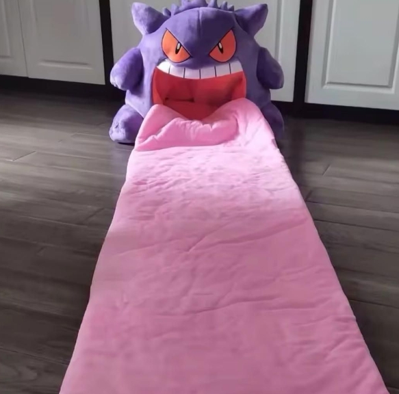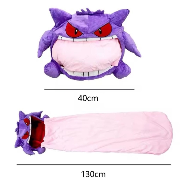 このゲンガーのデザインの寝袋は、ポケモンファンに最適です。ユニークなキャラクターの形状が魅力的で、寝る時も楽しい気分にさせてくれます。