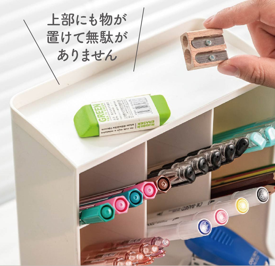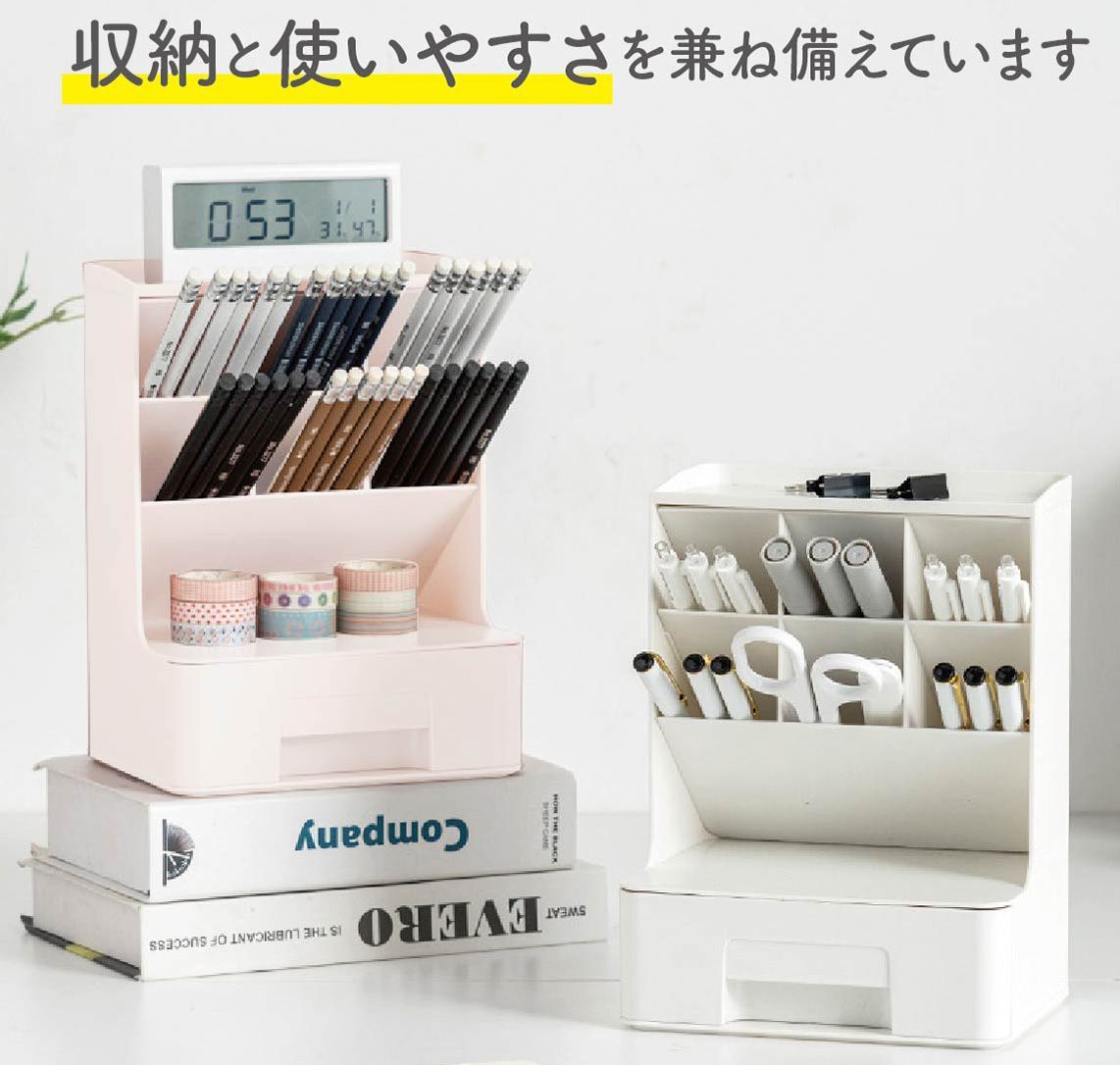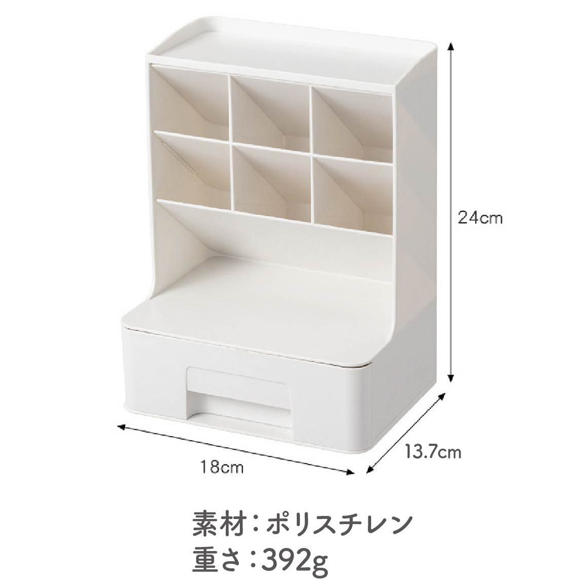 卓上収納ボックス モノの場所が一目瞭然♪色んな文具を分類ごとに収納可能。 小さなスペースで大きな収納。ペンやマーカーの収納に最適です。 斜め45°のボックス収納で、ペン類の取り出しさすさが抜群です。 下部には引き出しがついていて、大きめの小物も収納できます。 サイズ:18×13.7×24cm 材質:PS 重量:約392g