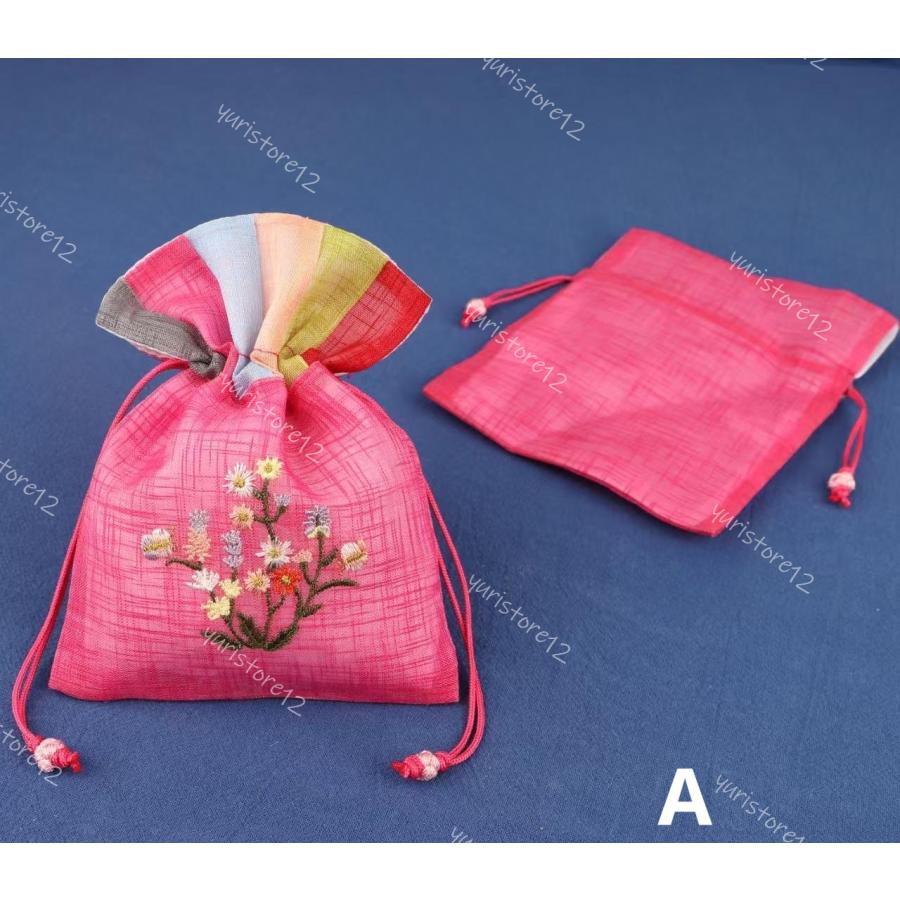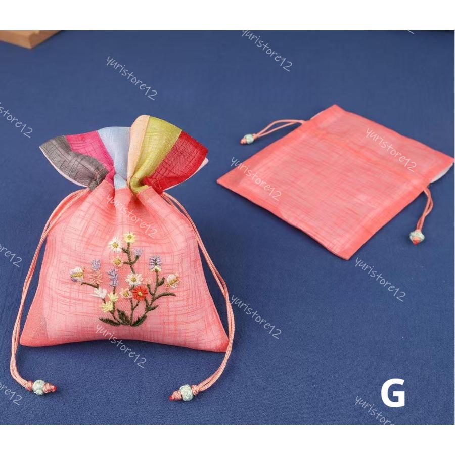 可愛い刺繍を使った飽きのこないデザインで、いつまでも使えるポジャギ柄のポーチです。