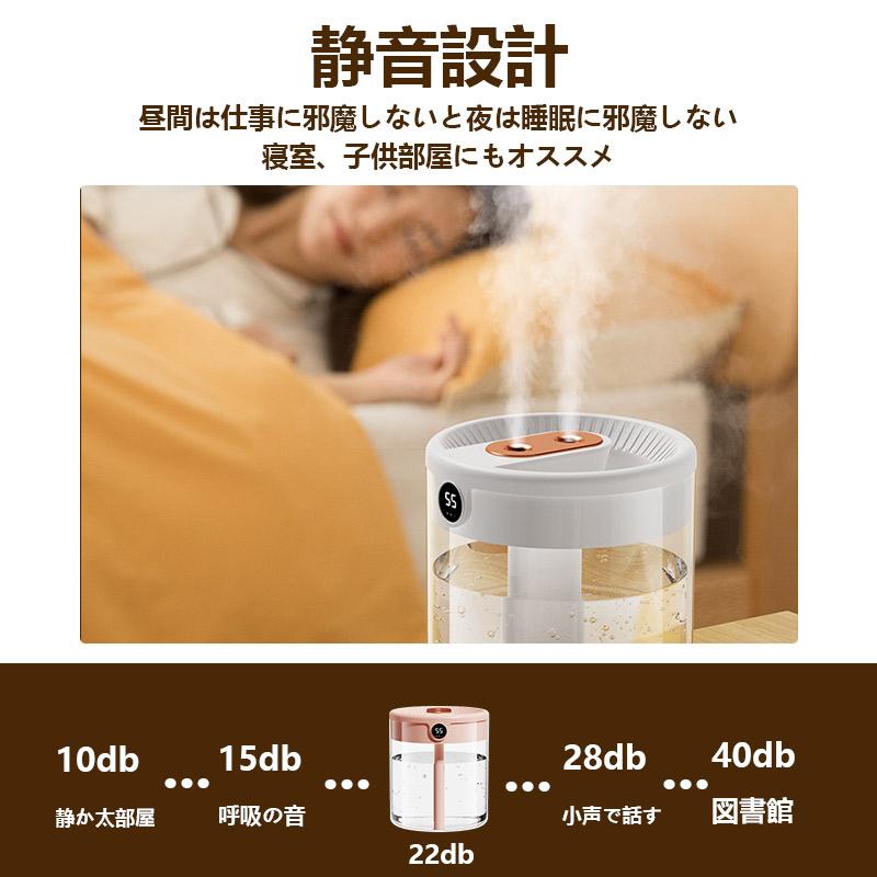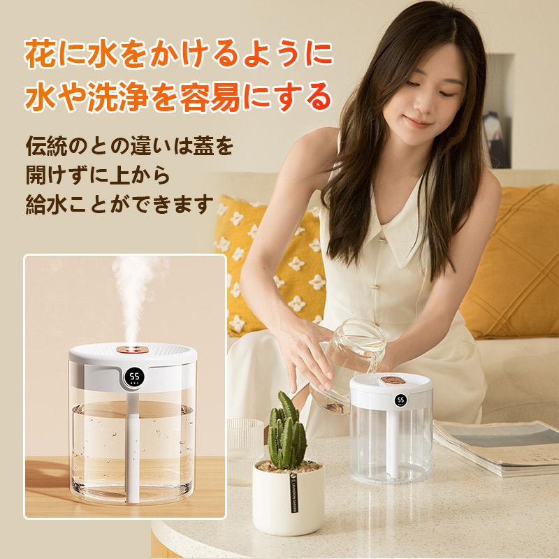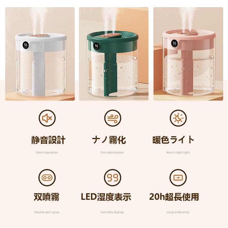 2つのミスト噴霧口が細かいミストで素早くお部屋をうるおす、水が積もることがない超音波方式を採用しています。