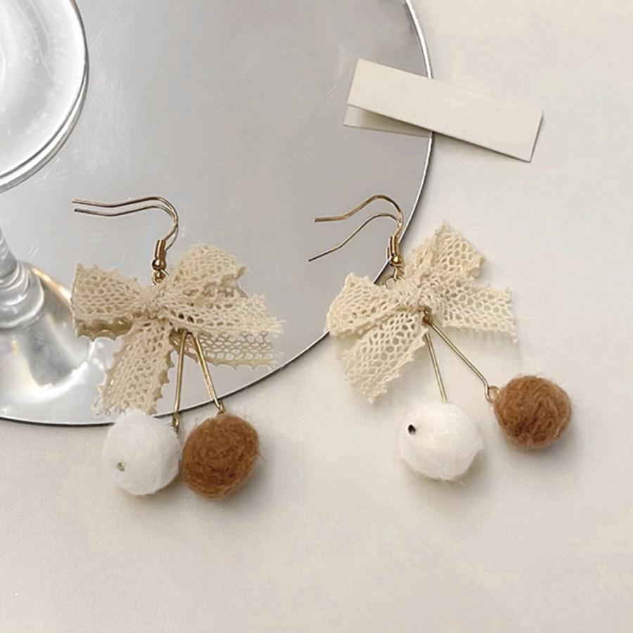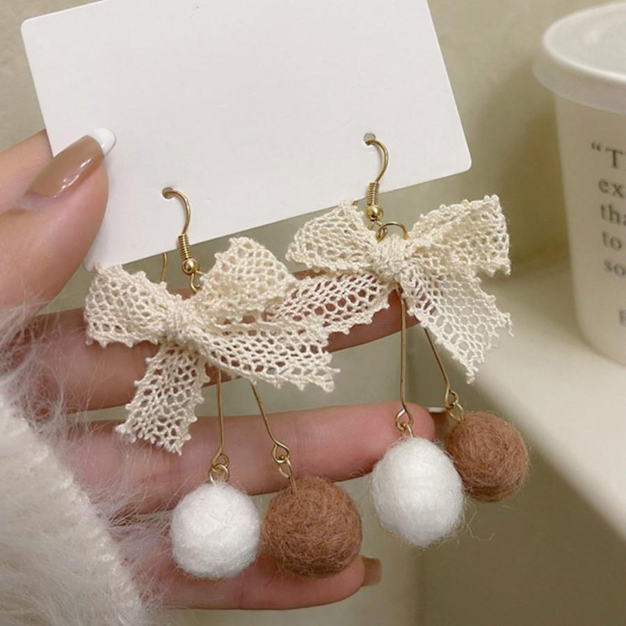 リボン結びアクセサリー 女性 きれいめ 小顔見え耳飾り 大人可愛い キュート 秋冬ロングピアス お洒落 韓国ファッション