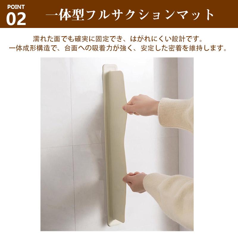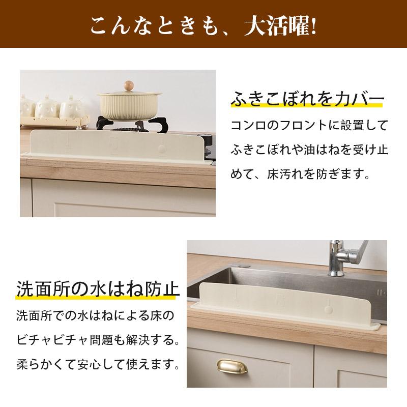 キッチンシンクだけでなく、洗面所の水はね防止や、コンロ前の油はねガードとしても活躍。1台で水まわり・調理まわりを清潔に保ちます。