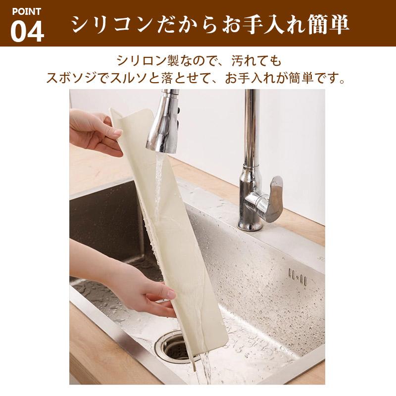 シンクで野菜や食器を洗うときの水しぶきをしっかりガード!高さ8cmのシリコン製ガードが周囲への水はねを防ぎ、調理台や床を濡らさずに快適に使えます。