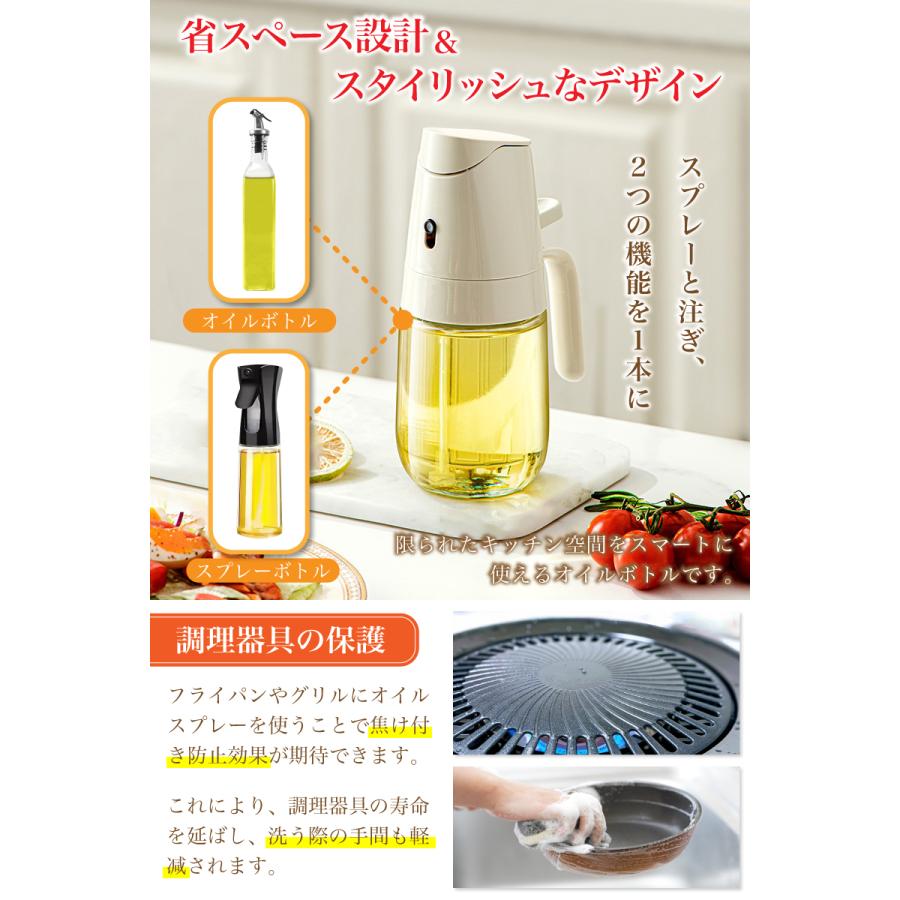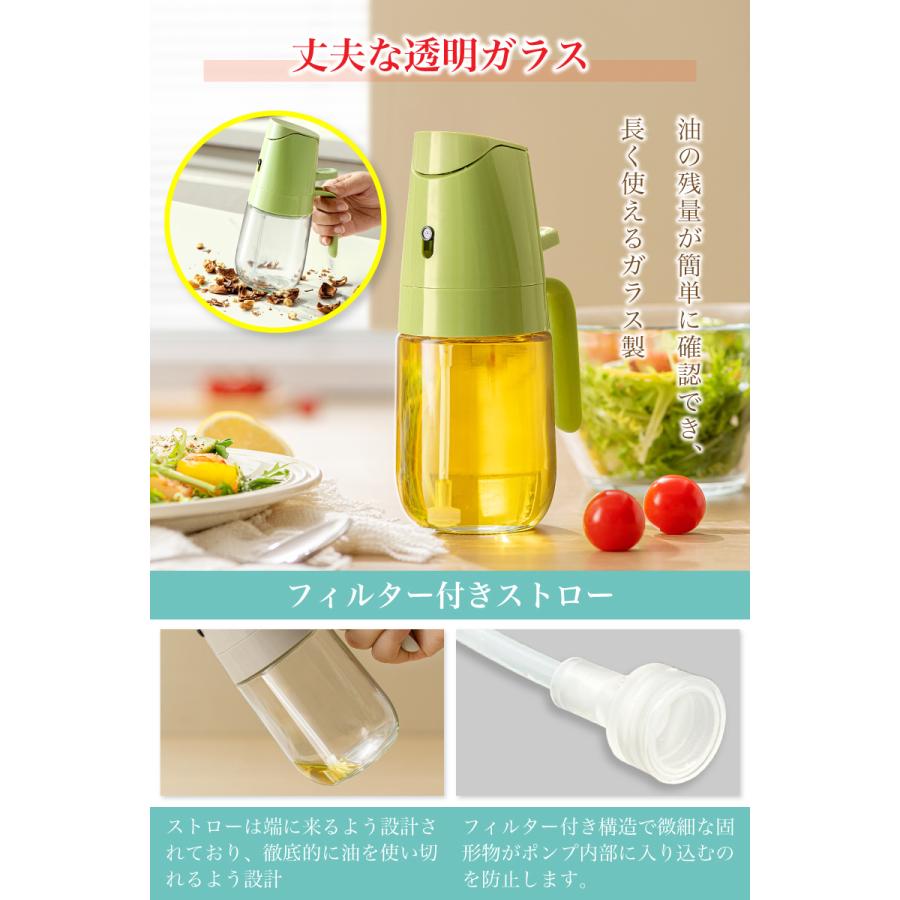 商品:スプレー式オイルボトル キッチン用品 ガラスボトル 話題の商品 人気商品 2WAYボトル 調理グッズ ステンレス製ノズル