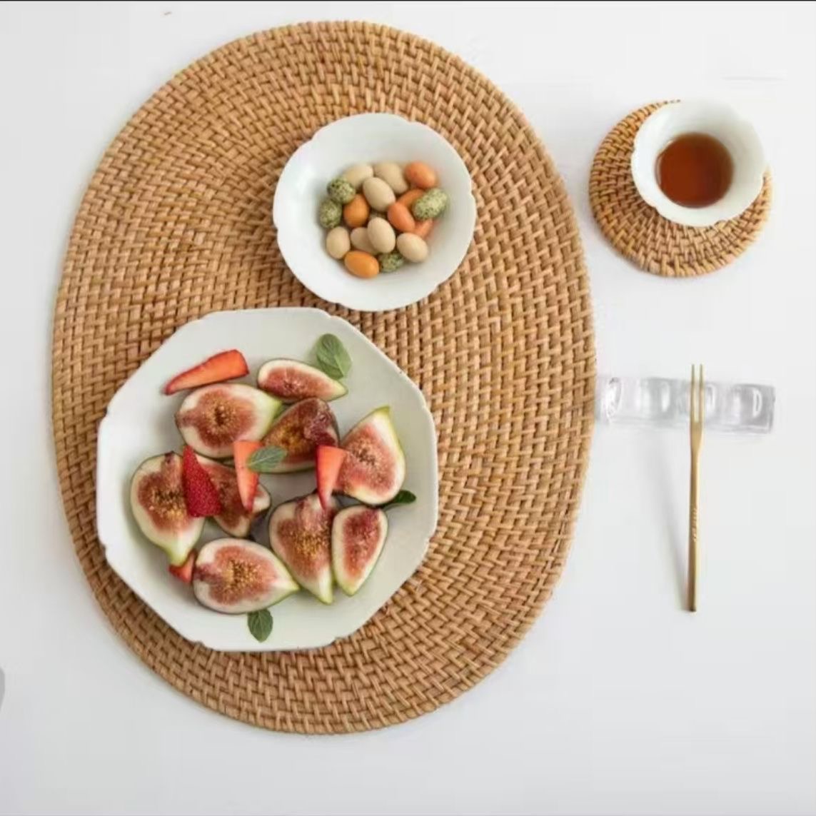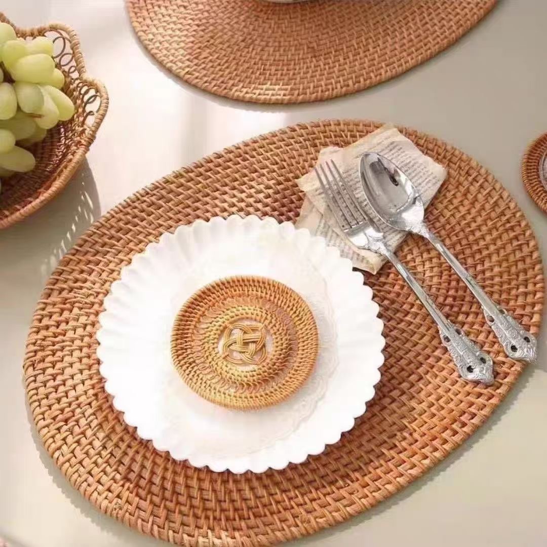 ⭐︎4枚セット⭐︎ サイズ:横40cm×縦30cm 形:オーバル型 ※手作りのため誤差がございます 美しいデザインと高い耐久性が特徴です。 ハンドメイドならではの温かみのある風合いが、 食卓に自然な彩りを加えます。 防虫・防カビ効果があるため、 長く清潔にお使いいただけます