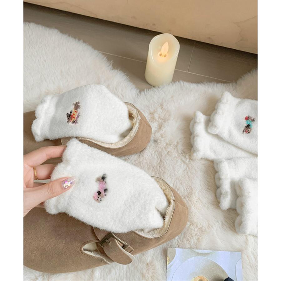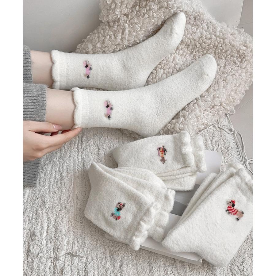 レディース ふわふわ 犬モチーフ ボア靴下冬 無地 ルームソックス防寒 可愛い靴下 4足組 ソックス 冷え取り暖かい靴下