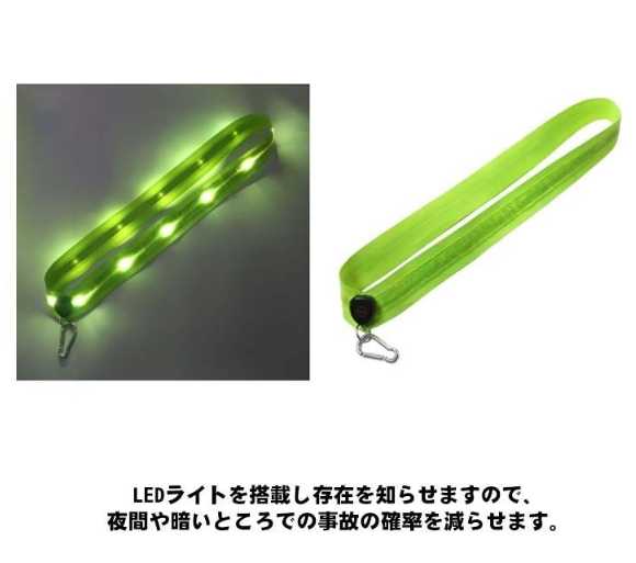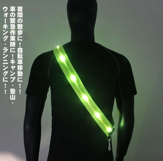 高輝度LEDライトを搭載した充電式のLED反射タスキです。