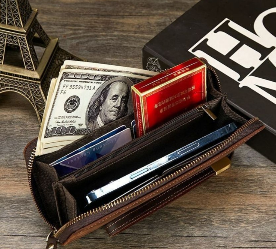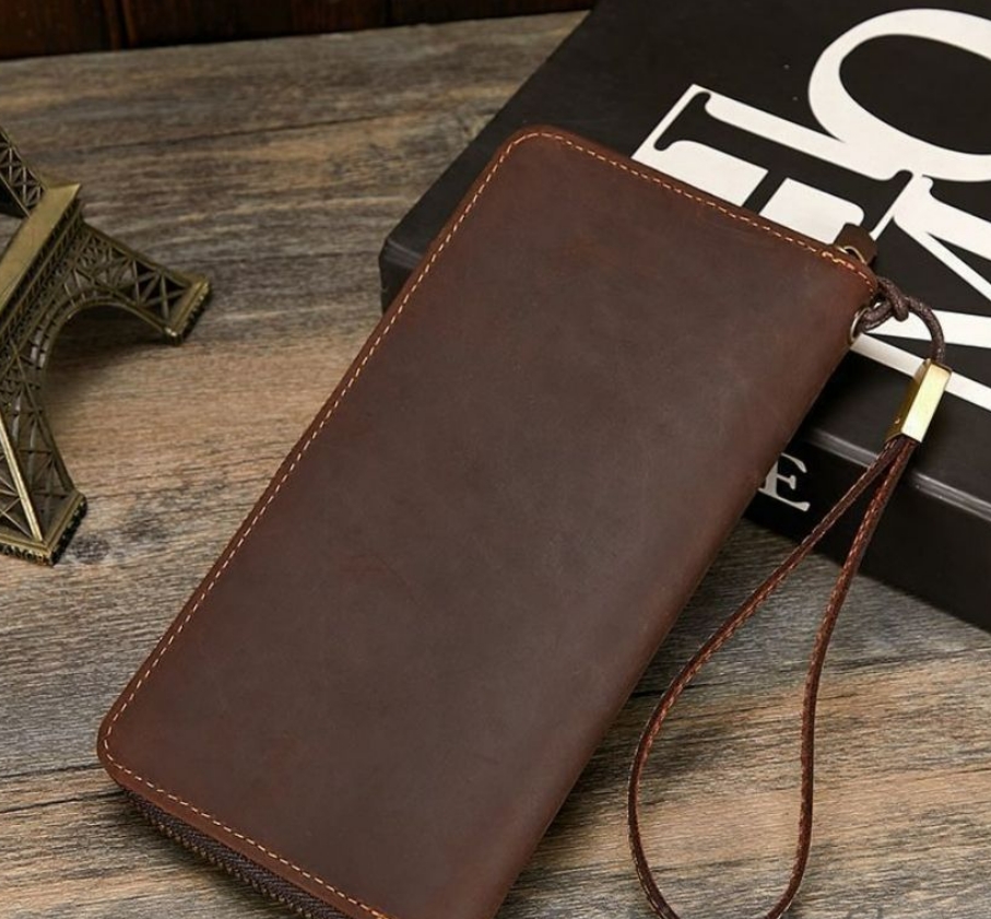 【新品未使用】ホースハイドメンズ財布本革トレンドレトロ長財布RFID耐磁メンズクラッチバッグ本革財布