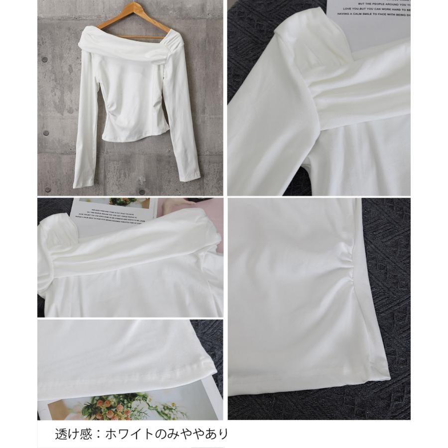 レディース 大人カジュアル タイトTシャツ 韓国風 片方オフショルダーカットソー サイドギャザー セクシーtシャツ 無地