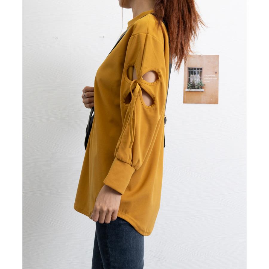 袖のリボンデザインが、さりげなくおしゃれな雰囲気をプラスするTシャツカットソー