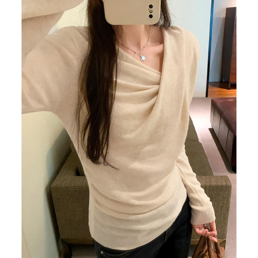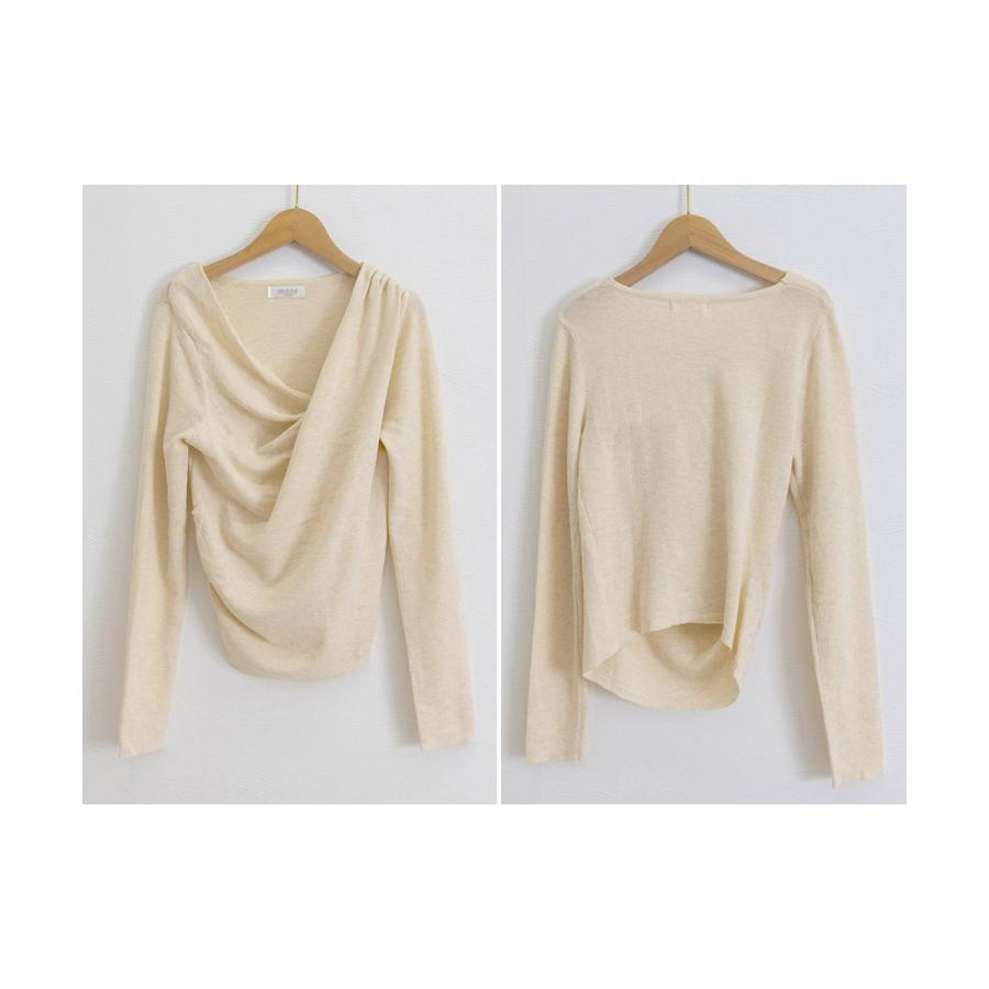 上品なドレープデザインが魅力の長袖ニットトップス。